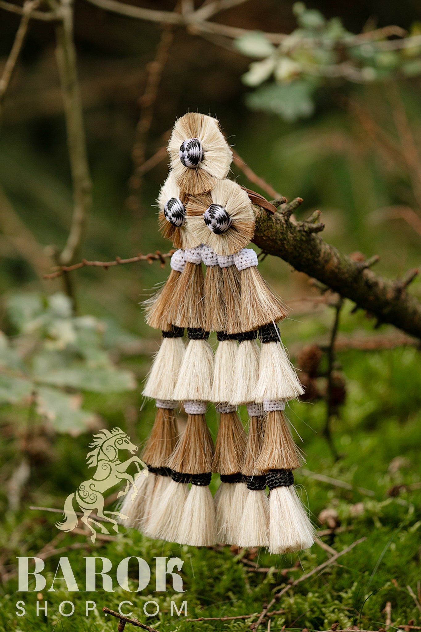 Beatifull ánd functional! Flies in your horses face will be chased away by the swinging movement of the mosquero. Tradionally, some PRE's would have their manes and forelock shaved. By attacting the mosquero to the browband, the horses still had their natural fly protection. The "Almería" mosquero is attached to the browband with small leather cords and is made of real horse hair.