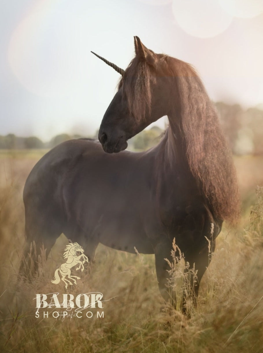 NOTE: Horses are of course not used to having a pointed horn on their head, and can therefore run into objects or people with the horn. Vigorous movement may cause the tip of the horn to break off for safety. Should this happen, the tip can easily be glued back to the horn.
