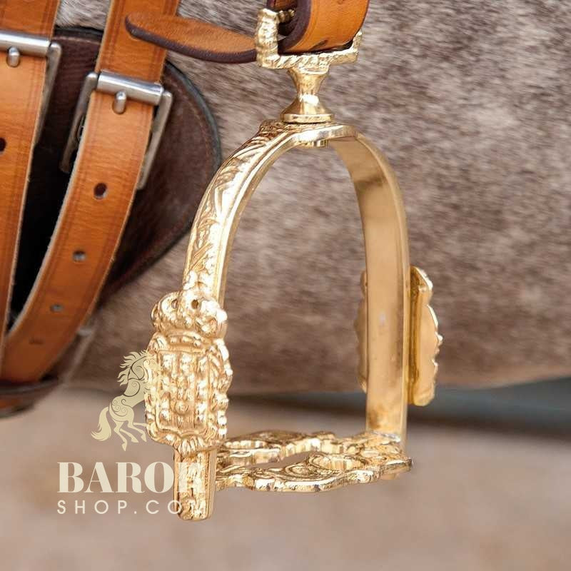Als je echt wil uitpakken, dan moet je deze prachtige barokke stijgbeugels hebben! De Escudo stijgbeugels zijn rijkelijke versierd en hebben een groot embleem op beide zijkanten.